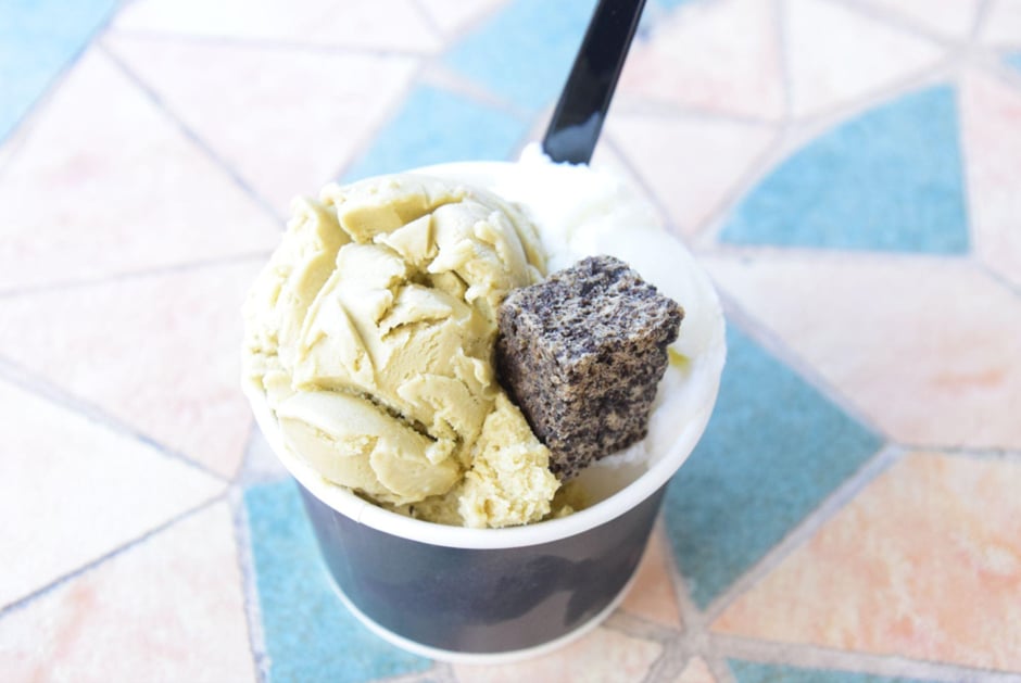 現在はチョコレート、ピスタチオ、マロン(季節限定)など、いくつかのフレーバーが牧場内の店舗に並びます。